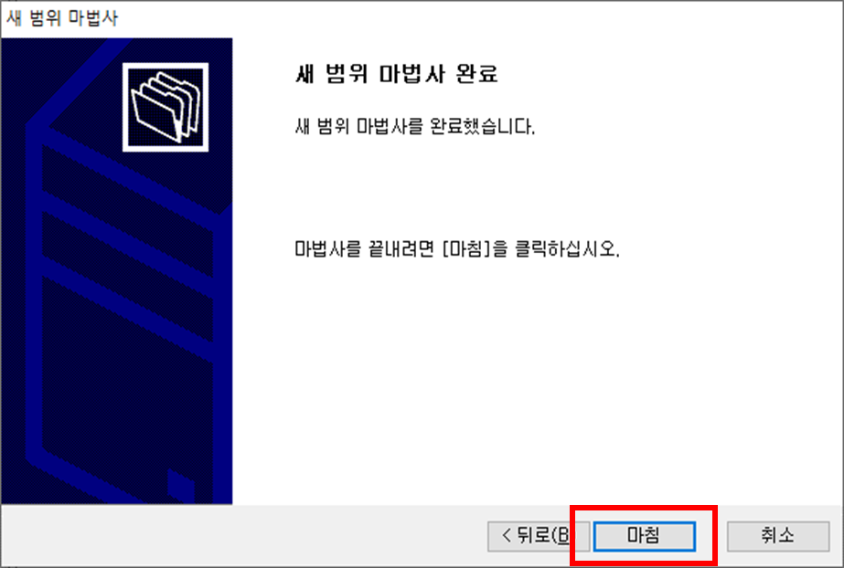 새 범위 마법사 '다음(N)>'